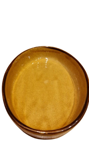 Mísa je zachovalá, s autentickou patinou. Na glazuře je patrná jemná kraleláž (vlasové trhlinky), která k tomuto typu starší keramiky patří a dodává jí vintage charakter.