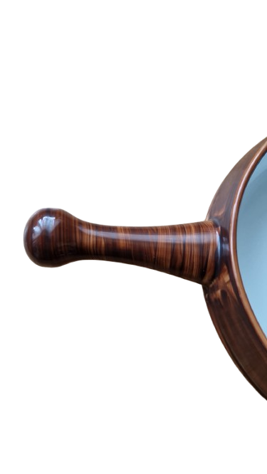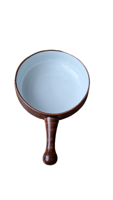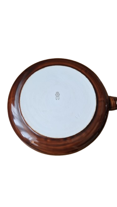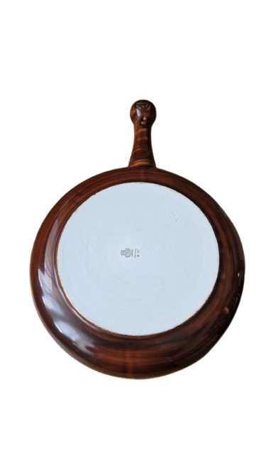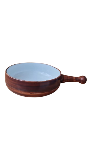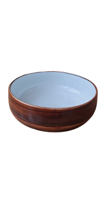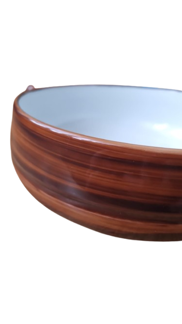 Vnější strana je zdobena efektní hnědou glazurou s texturou dřeva, která působí hřejivým a přírodním dojmem. Vnitřek je čistě bílý a vysoce lesklý.