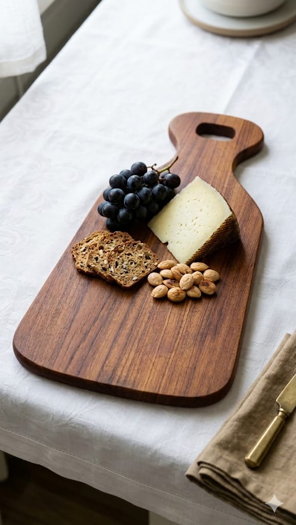 Díky vysokému obsahu přirozených olejů je dřevo extrémně odolné a vhodné jak pro krájení, tak pro stylové servírování sýrů, tapas či uzenin. Prkénko je čerstvě ošetřeno přírodním voskem, má krásnou patinu a je připraveno k okamžitému použití v moderní i retro kuchyni.